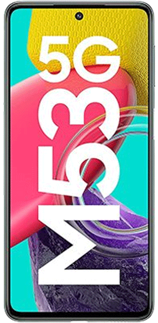The Samsung Galaxy M53 features a 6.7-inches 120 Hz Super AMOLED display with a resolution of 1080 x 2408 pixels and a central hole punch cutout for the front selfie camera.
